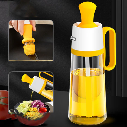 زجاجة الزيت 2 في 1، يمكنك التحكم في كمية الزيت بسهولة بفضل القطارة الدقيقة وفرشاة السيليكون المدمجة، مما يساعدك على الطهي بطريقة صحية واقتصادية