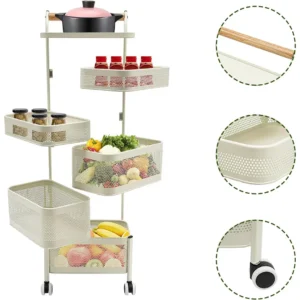 تصميم عملي وأنيق – رف دوّار ينظم مطبخك ويوفر المساحة بأناقة خمسة سلال واسعة + رف علوي = أقصى استغلال